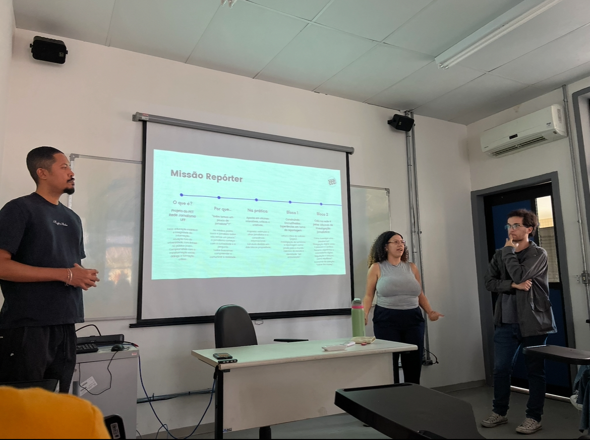 Um projeto de educação midiática e integridade da informação com foco na prática jornalística. Promovemos uma atuação para além da universidade, com ênfase no público jovem, comprometido com a transformação social, o diálogo e a formação crítica.